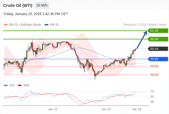在 59.95 之上,看涨,目标价位为 60.90 ,然后为 61.30 。