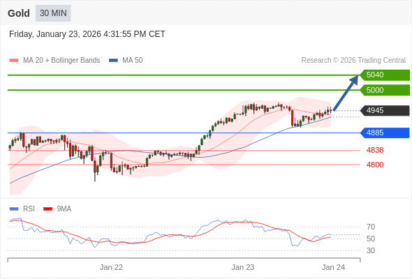 在 4885 之上,看涨,目标价位为 5000 ,然后为 5040 。