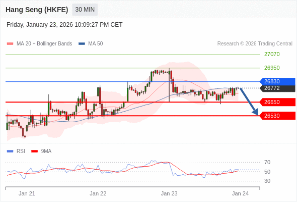 香港恒生指数期货 当日内: 短期关键阻力位在26830。