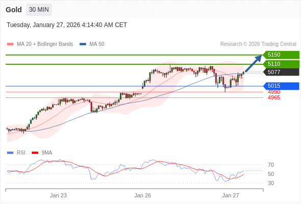在 5015 之上,看涨,目标价位为 5110 ,然后为 5150 。