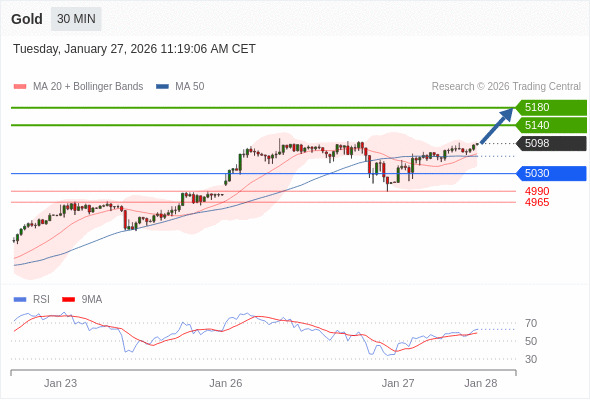 在 5030 之上,看涨,目标价位为 5140 ,然后为 5180 。
