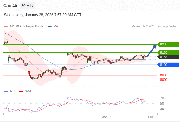 在 8100 之上,看涨,目标价位为 8180 ,然后为 8235 。
