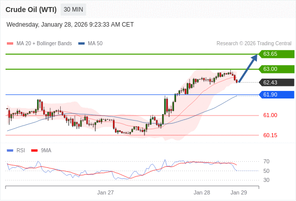 在 61.90 之上,看涨,目标价位为 63.00 ,然后为 63.65 。