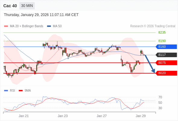 在 8160 之下,看跌,目标价位为 8075 ,然后为 8020 。