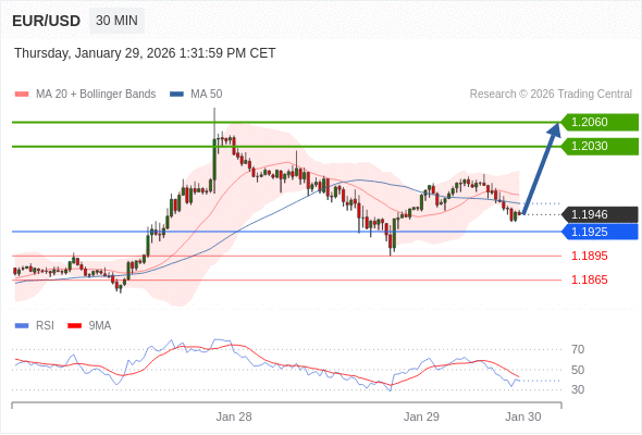 在 1.1925 之上,看涨,目标价位为 1.2030 ,然后为 1.2060 。