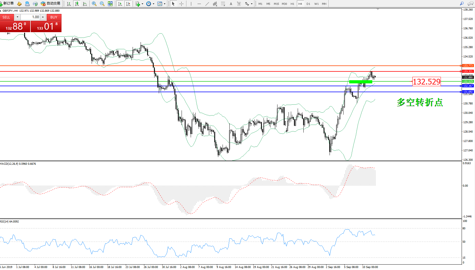 交易策略:132.529上方看涨,目标133.321、133.773