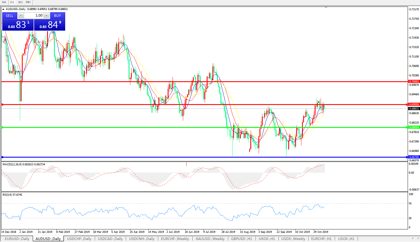 压制位:0.6900 0.7000