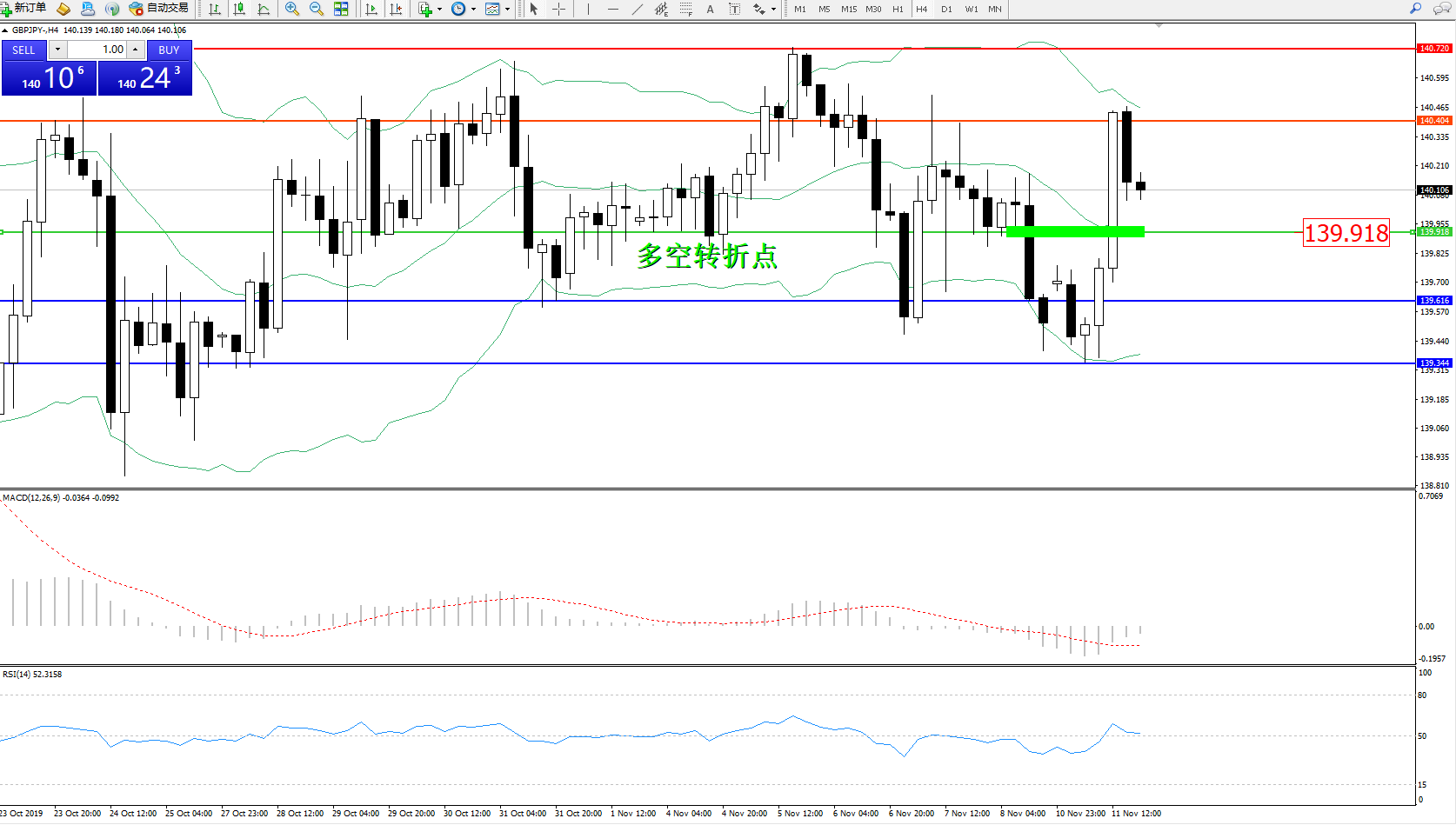 交易策略:139.918上方看涨,目标140.404、140.720