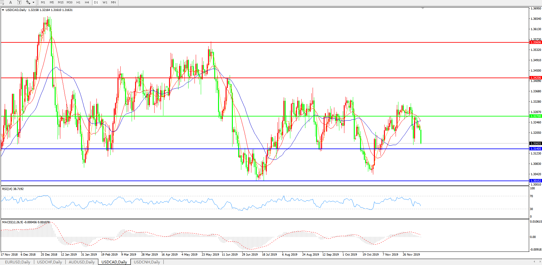 美元兑加元USDCAD 日线图: