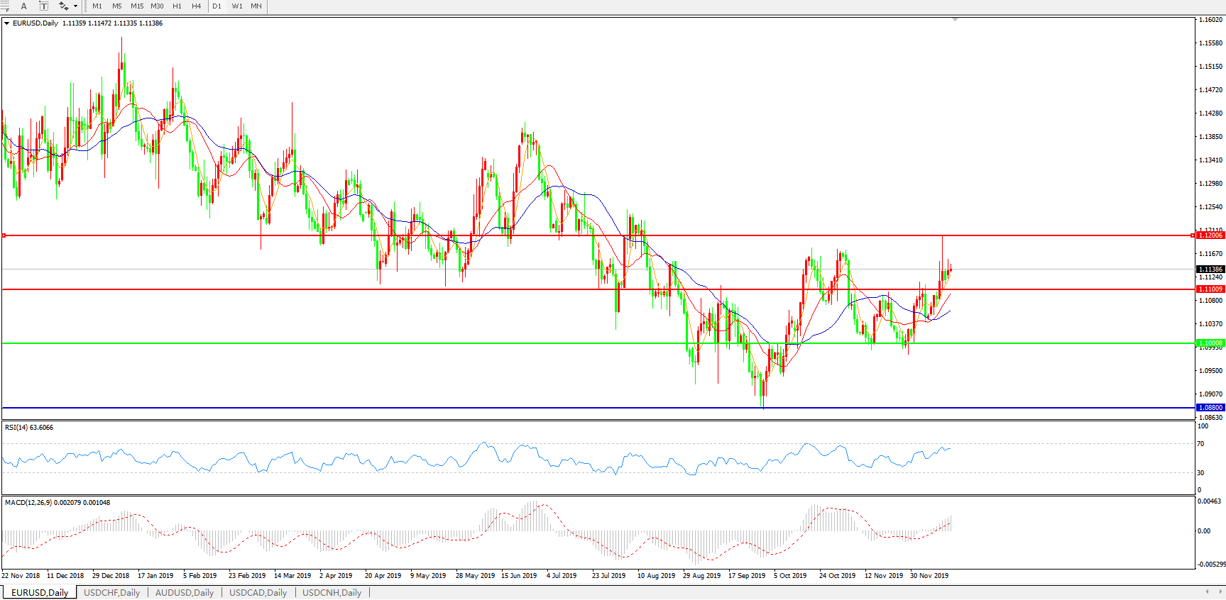 欧元兑美元EURUSD   日线图: