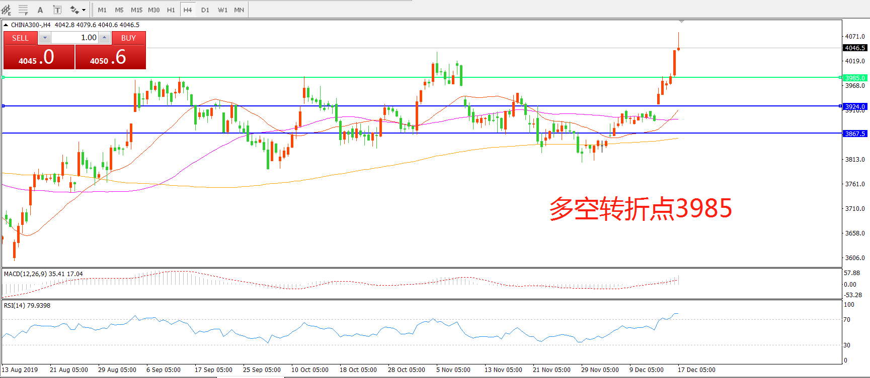 多空转折点:3985.00