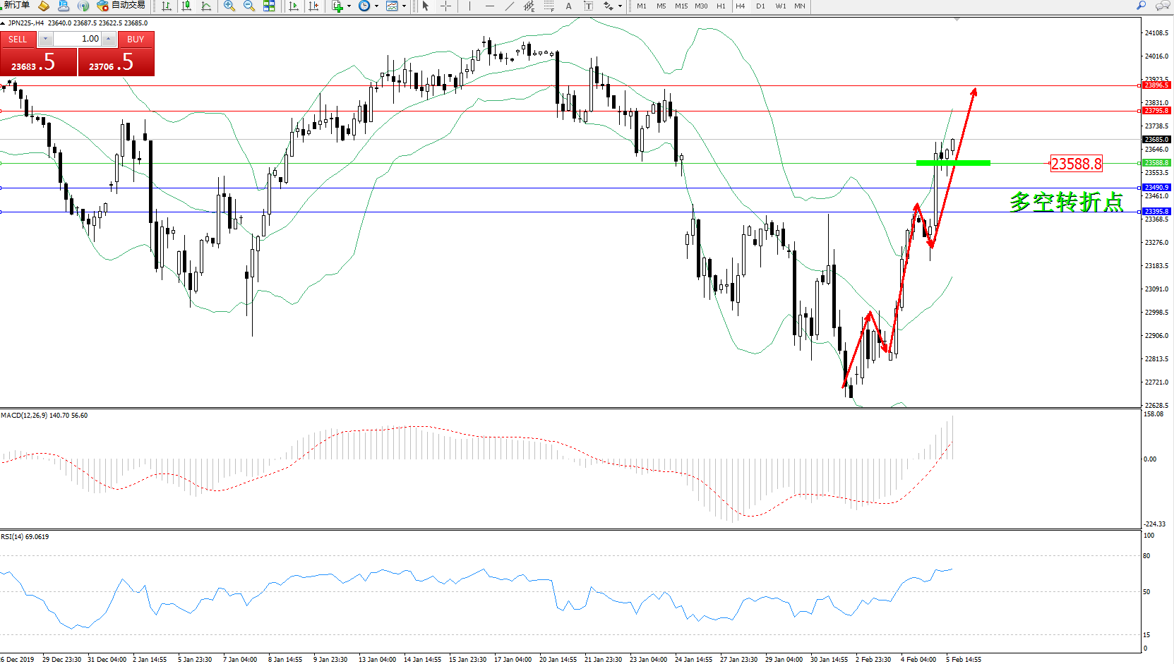 交易策略:23588上方看涨,目标23795、23896