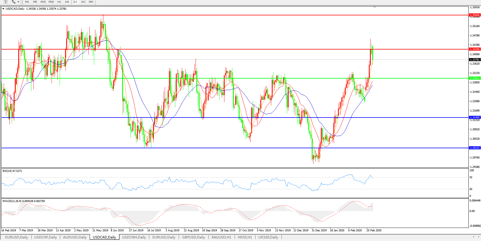 美元兑加元USDCAD    日线图: