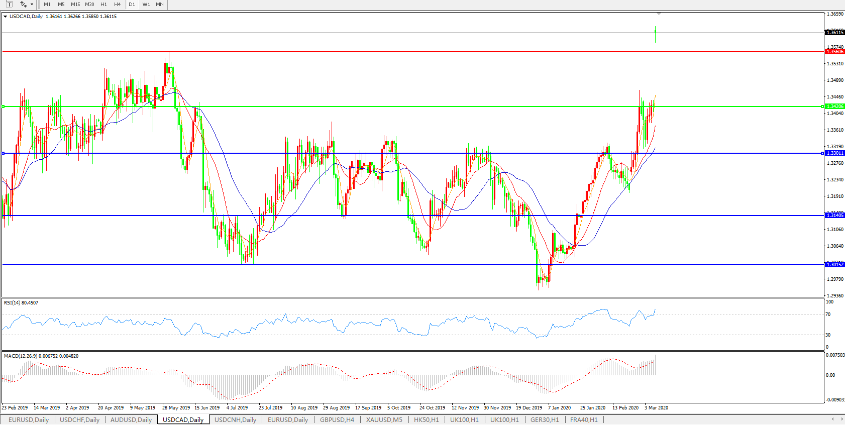 美元兑加元USDCAD 日线图: