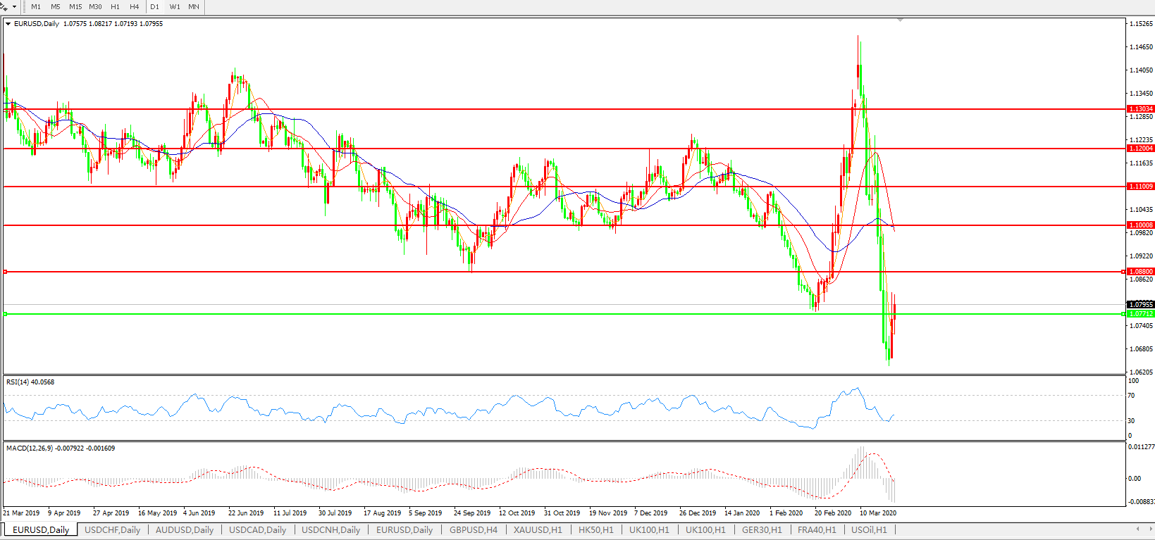 欧元兑美元EURUSD 日线图: