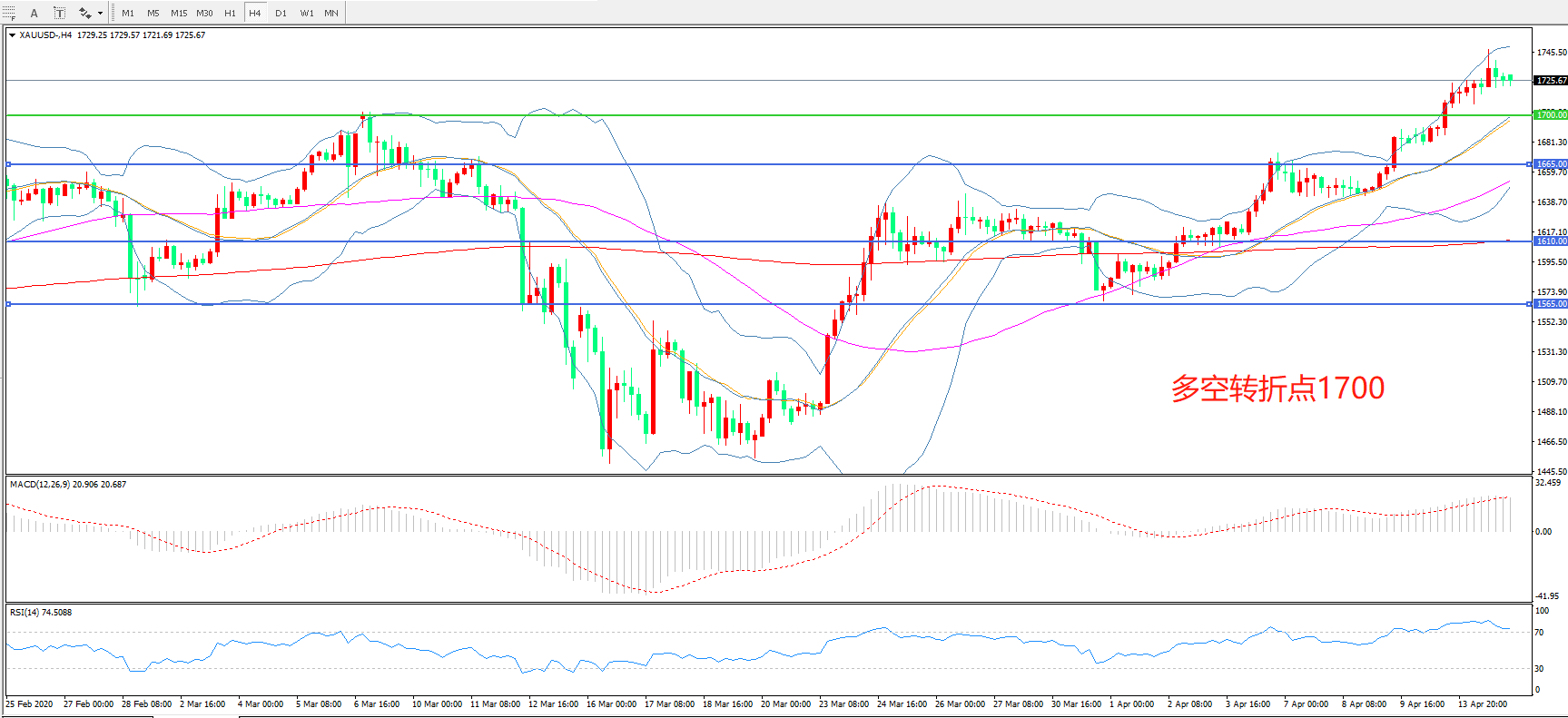 多空转折点:1700.00