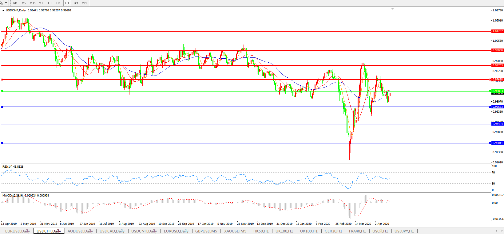 美元兑瑞郎USDCHF 日线图:
