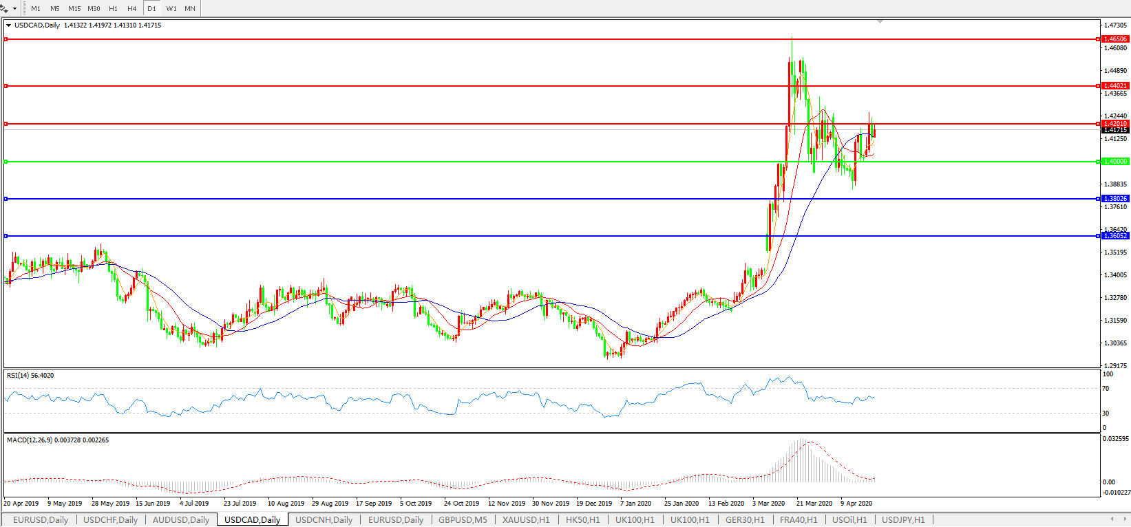 交易策略: 在1.4000之上,看涨,目标价位为1.4200、1.4400