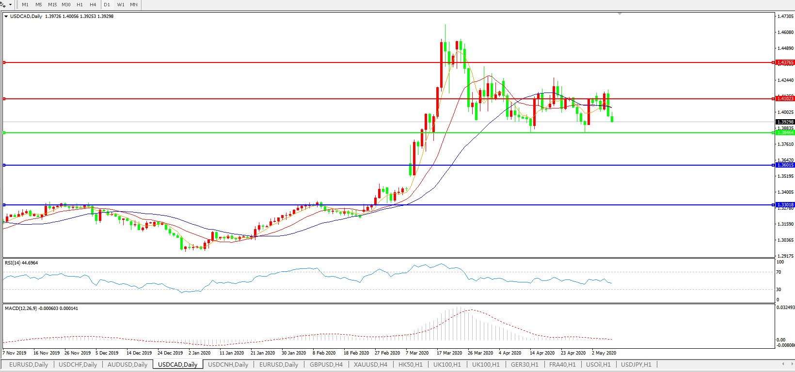 美元兑加元USDCAD 日线图: