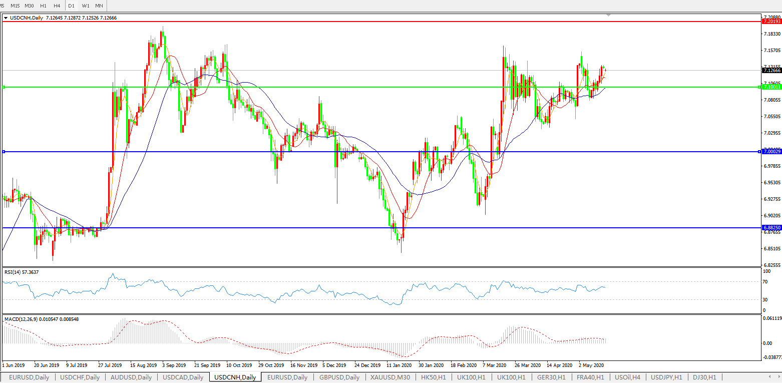 交易策略: 在7.1000之上,看涨,目标价位为7.2000,然后为7.3000。