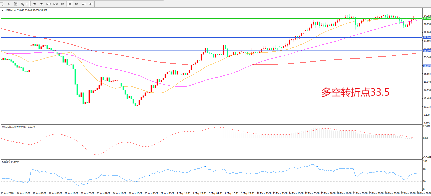周四(5月28日),根据美国能源信息署数据显示,美国当周EIA原油库存大幅增加,但库欣地区库存大幅减少,库存危机的缓解抵消了数据利空。美国WTI原油在短线下行后快速反弹,收报33.68美元/桶。5月以来,美国所有州都开始了逐步重启经济的进程,部分州甚至有继续攀升的趋势,如火如荼的经济复苏为未来原油需求面的改善提供了希望。