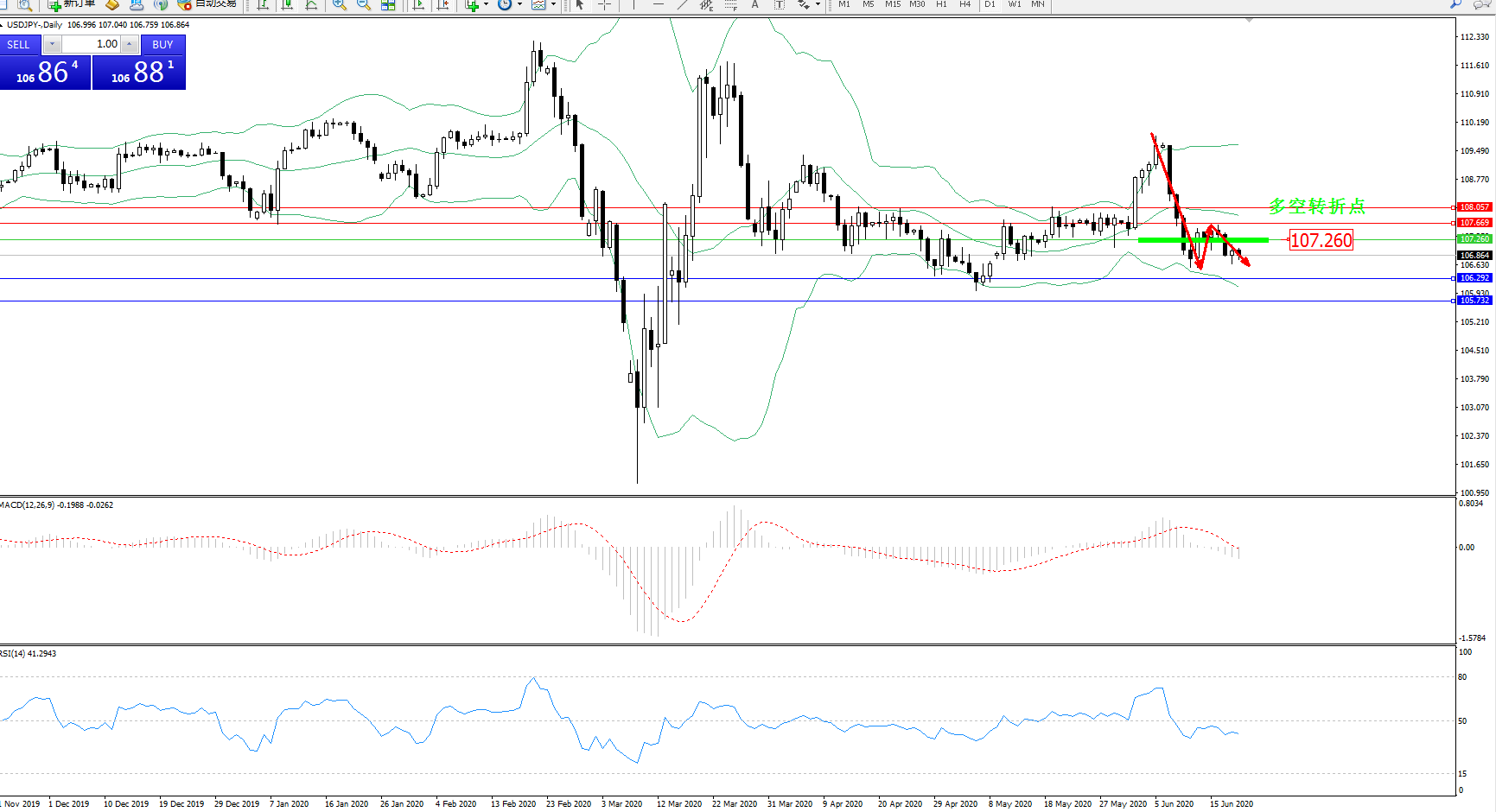 多空转折点:107.260
