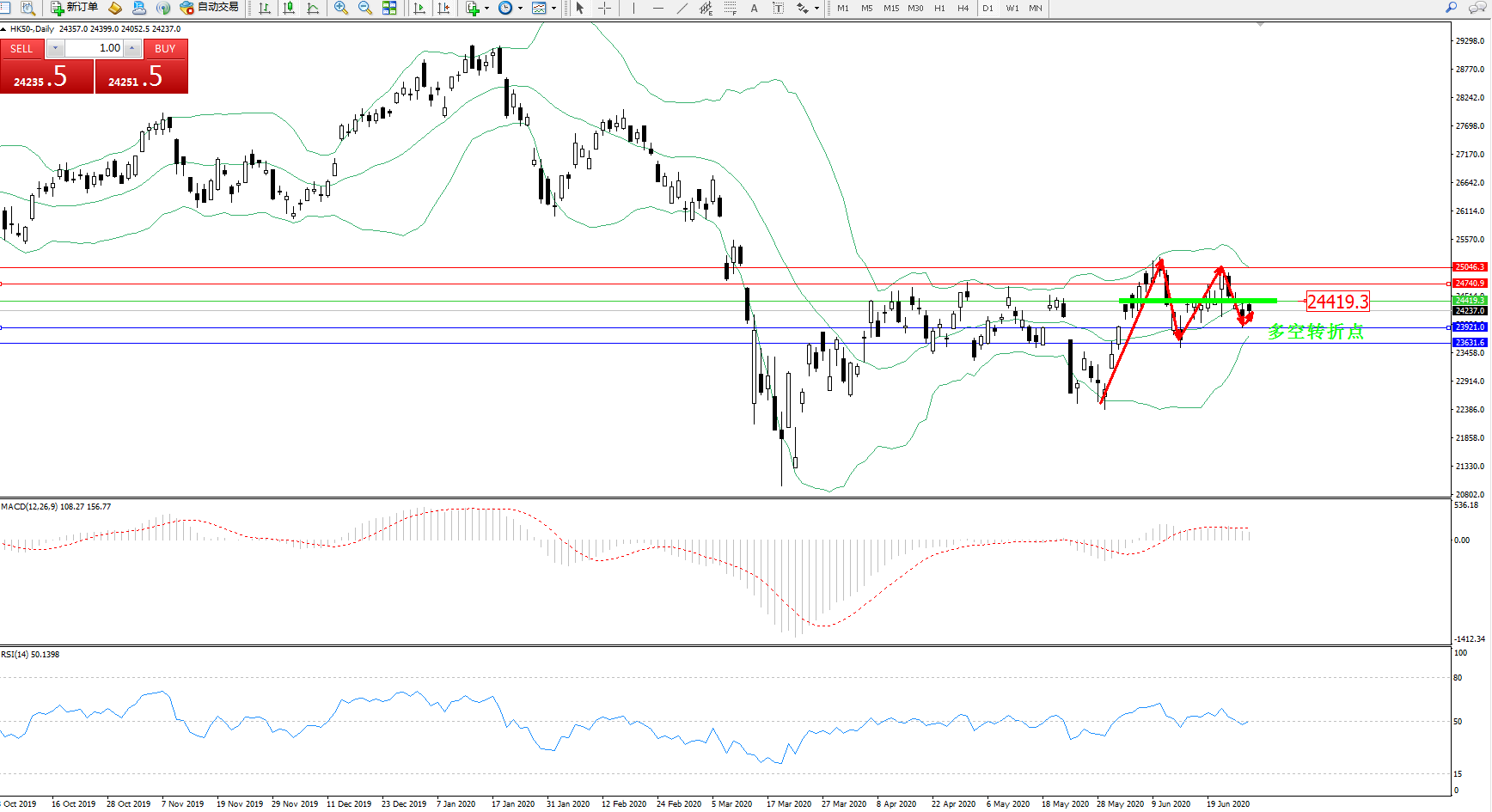 香港恒生指数630日(周二)收盘上涨125.91点,涨幅0.52%,报24427.19点;港股三大指数呈高开低走行情,一度涨超1%的三大指数盘中曾纷纷翻绿。国指涨0.01%9758点,红筹指数跌0.14%3756点。南下资金大幅净流入62.79亿港元,大市成交额为1224.9亿港元。软件股表现活跃,金蝶国际升超6%续创新高;蓝筹股大多强势,港交所升超3%再创新高,腾讯大涨2.59%力撑大市。6月收官恒指反弹超6%,上半年下挫13.3%。上半年南向资金累计净流入3000.15亿港元。因71(本周三)是香港回归纪念日,港股休市一日。港股通(南向)方面,71日暂停服务,72日恢复正常。十三届全国人大常委会第二十次会议30日在北京人民大会堂举行第二次全体会议、第三次全体会议和闭幕会。会议表决通过了《中华人民共和国香港特别行政区维护国家安全法》,国家主席习近平签署第49号主席令予以公布;表决通过了全国人民代表大会常务委员会关于增加香港特别行政区基本法附件三所列全国性法律的决定。
