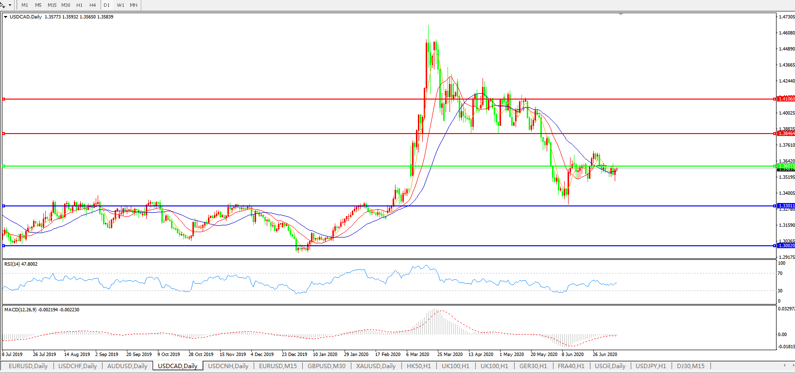 美元兑加元USDCAD    日线图: