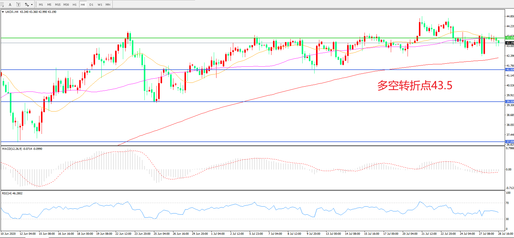 多空转折点:43.50