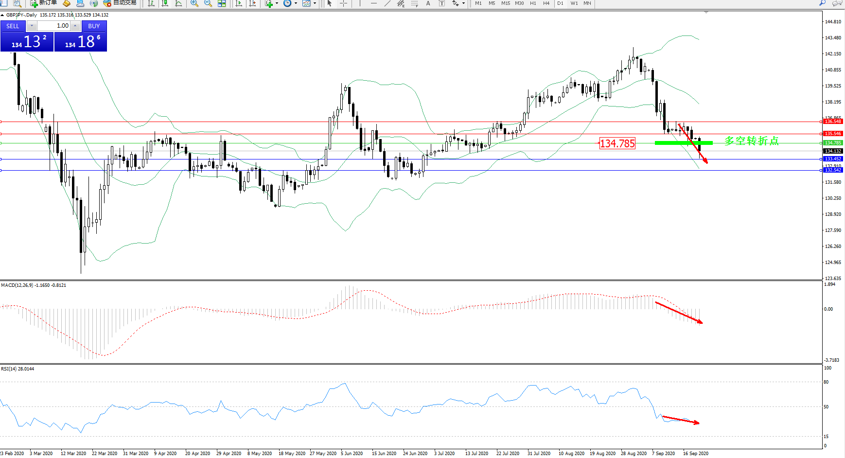 交易策略:134.785下方看跌,目标133.452、132.542