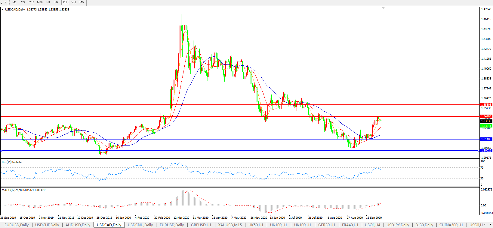 美元兑加元USDCAD 日线图: