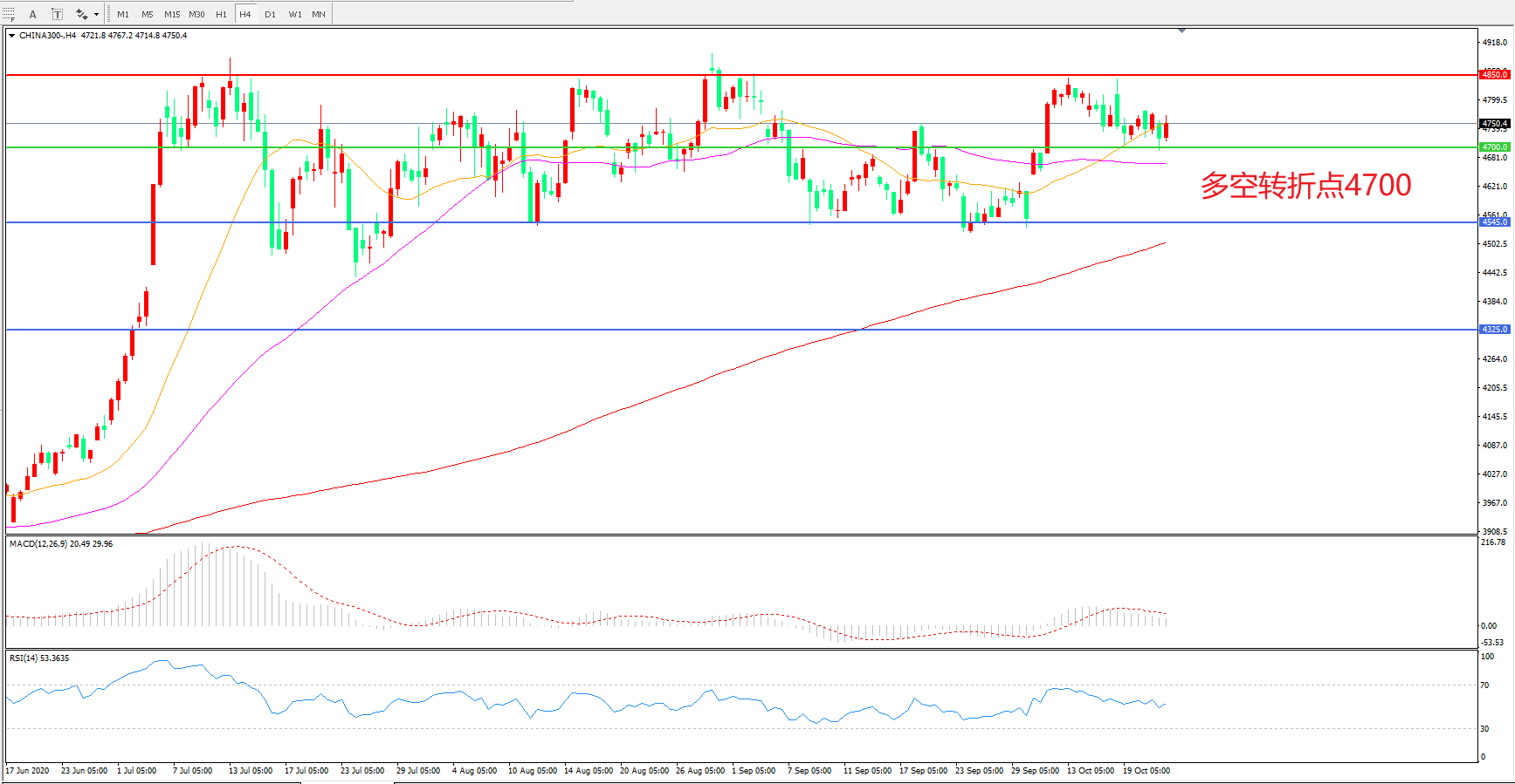 多空转折点:4700.00
