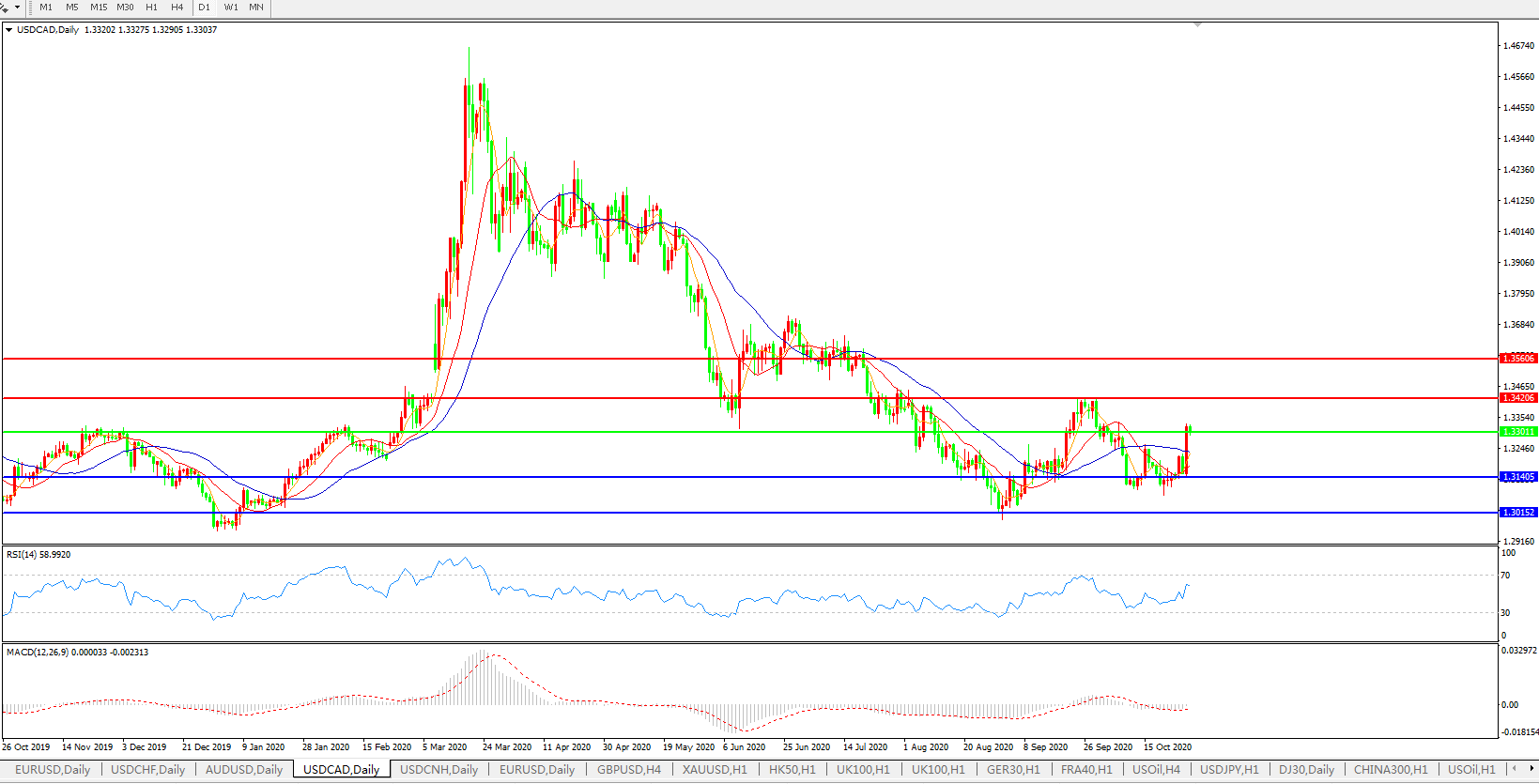 美元兑人民币USDCNH 日线图: