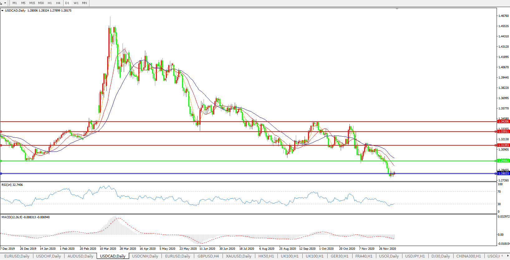 美元兑加元USDCAD    日线图: