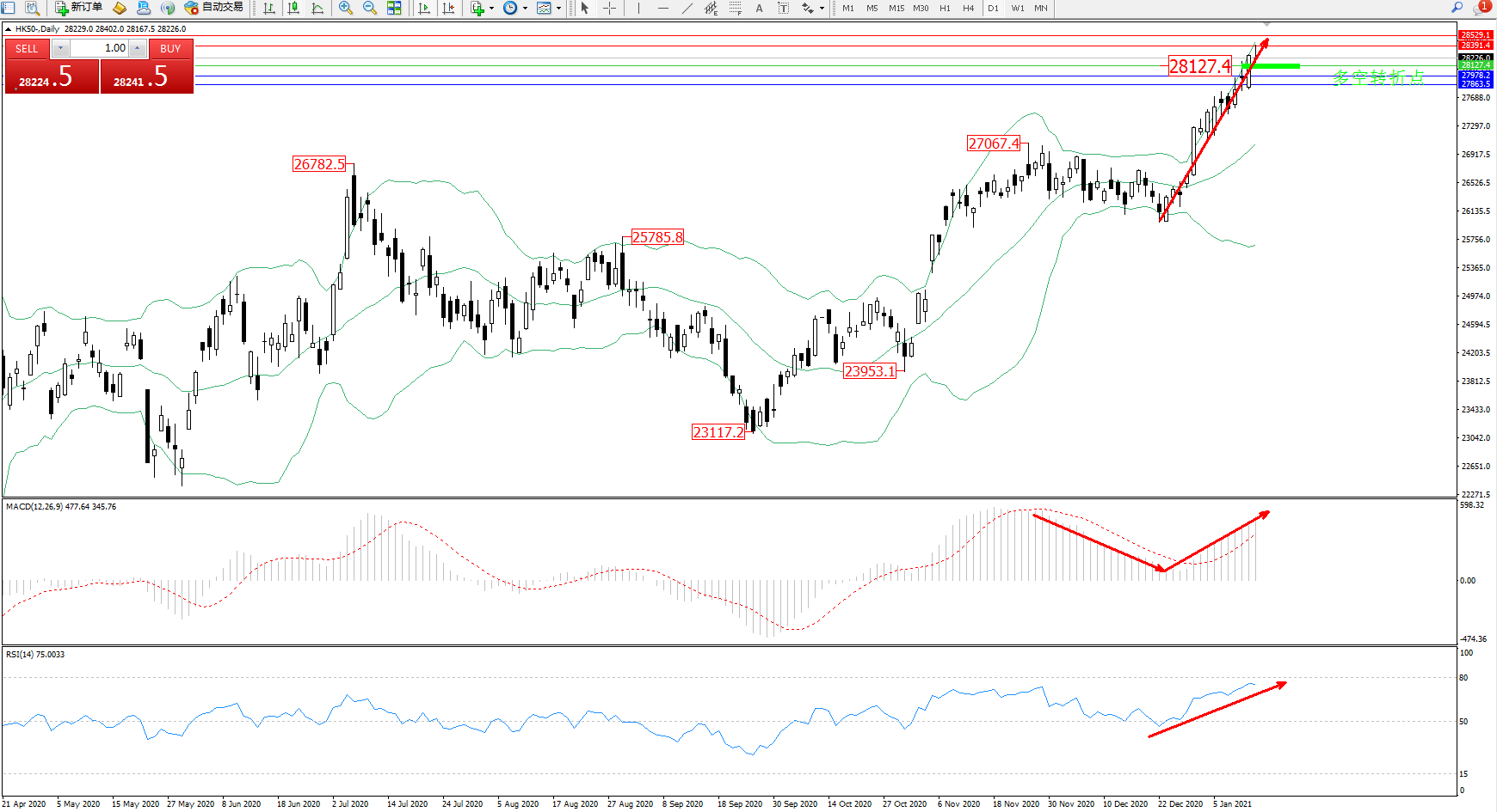 技术点评:多头动力延续布林带指标上轨附近持续震荡上扬态势良好,布林带指标呈张口走势中,多头潜力屡破新高,尚未有止步迹象,关注布林带指标上轨附近关键节点,MACD指标处于0轴线上方多头区域高位持续震荡向上移动中,RSI指标处于多头区域持续震荡上扬后即将触及80均衡线附近节点;