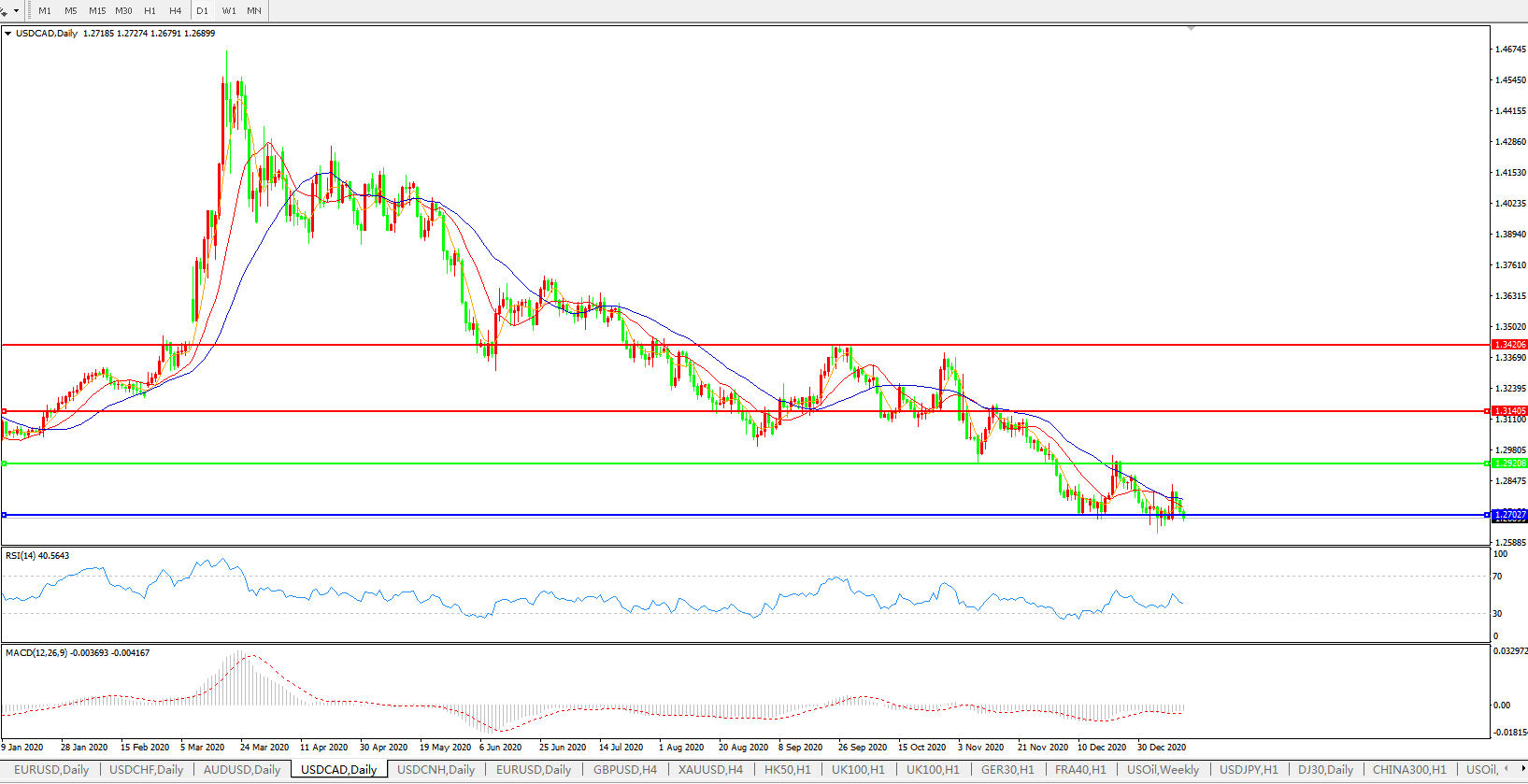 美元兑加元USDCAD 日线图: