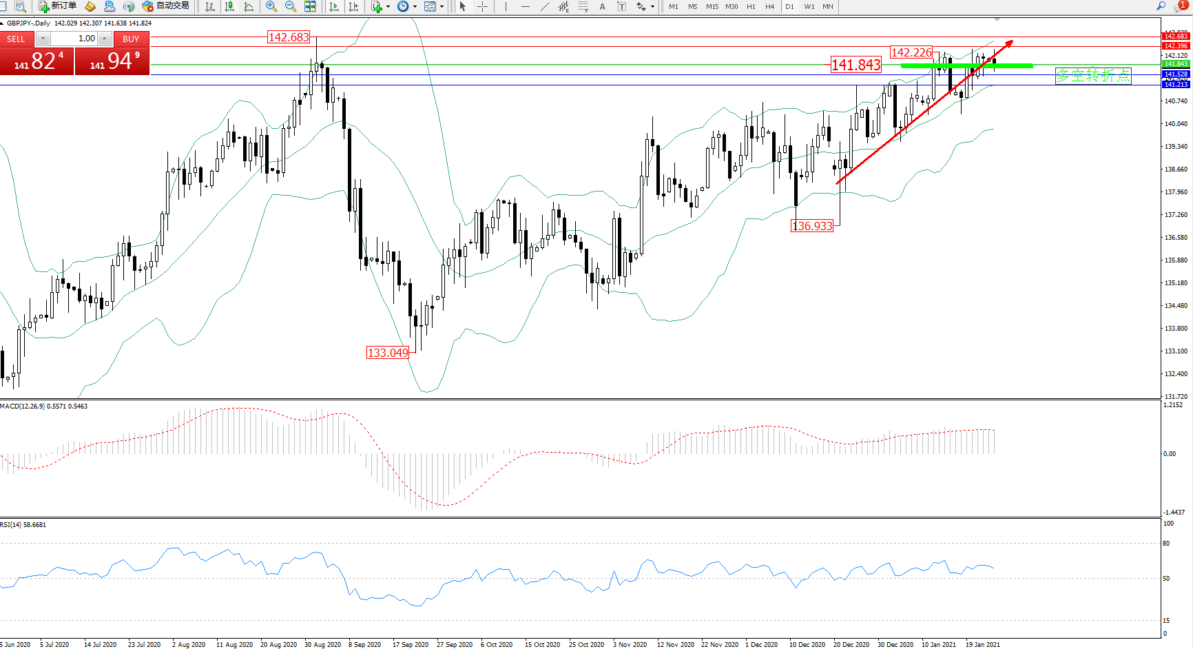 英镑兑日圆高位141.824附近弱势整理中,拜登与“欧洲特朗普”通话,英美关系或迎来新起点;英国首相办公室说,约翰逊与拜登当地时间周六在后者就职以来的首次对话中发誓要深化关系并合作应对气候变化。英国方面发表声明说,约翰逊祝贺拜登就职,两位领导人期待深化两国之间的紧密联盟;约翰逊是第一位接到拜登电话的欧洲领导人。拜登此前曾与加拿大和墨西哥领导人通话。约翰逊因此成为北美以外首位与拜登通话的领导人。原定的通话被提前了两天,这将被视为对英美特殊关系注入的一针强心剂;此次对话似乎旨在使两人之间的关系升温,因为拜登曾在2019年称约翰逊是前任美国总统特朗普“身体和情感的克隆”。拜登还一直对约翰逊的脱欧政策持批评态度。报道称,约翰逊“热烈欢迎”拜登让美国重返巴黎气候协定和重新加入世界卫生组织的决定。两位领导人还重申了对北约联盟的承诺。