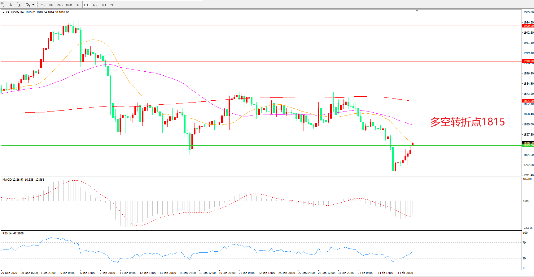 多空转折点:1815.00