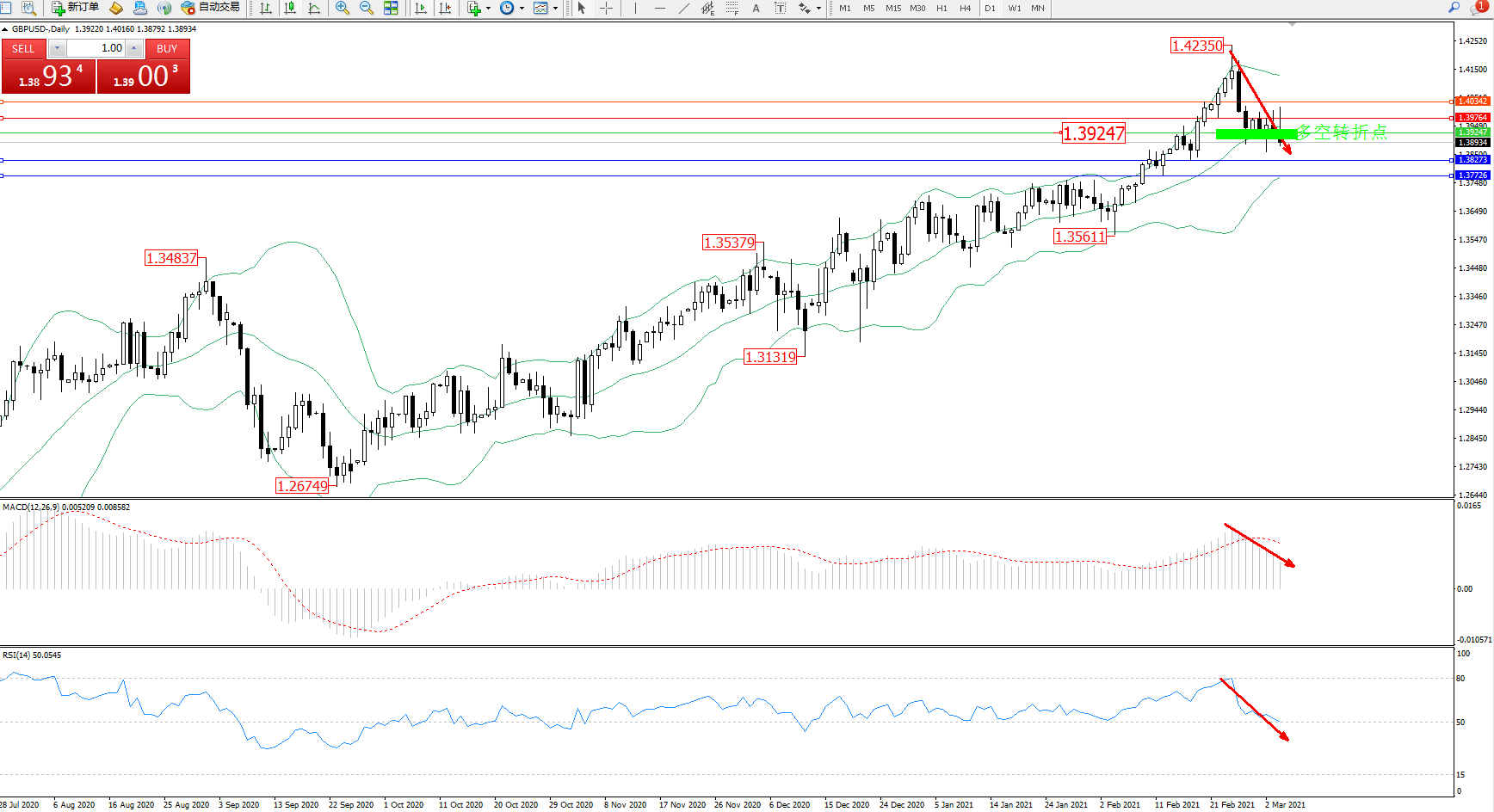 交易策略:1.39247下方看跌,目标1.38273、1.37726