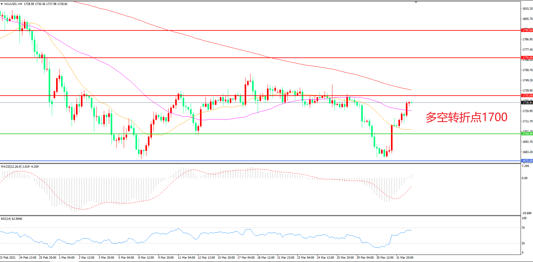 交易策略:在1700.00之上看涨,目标1735.00    1770.00
