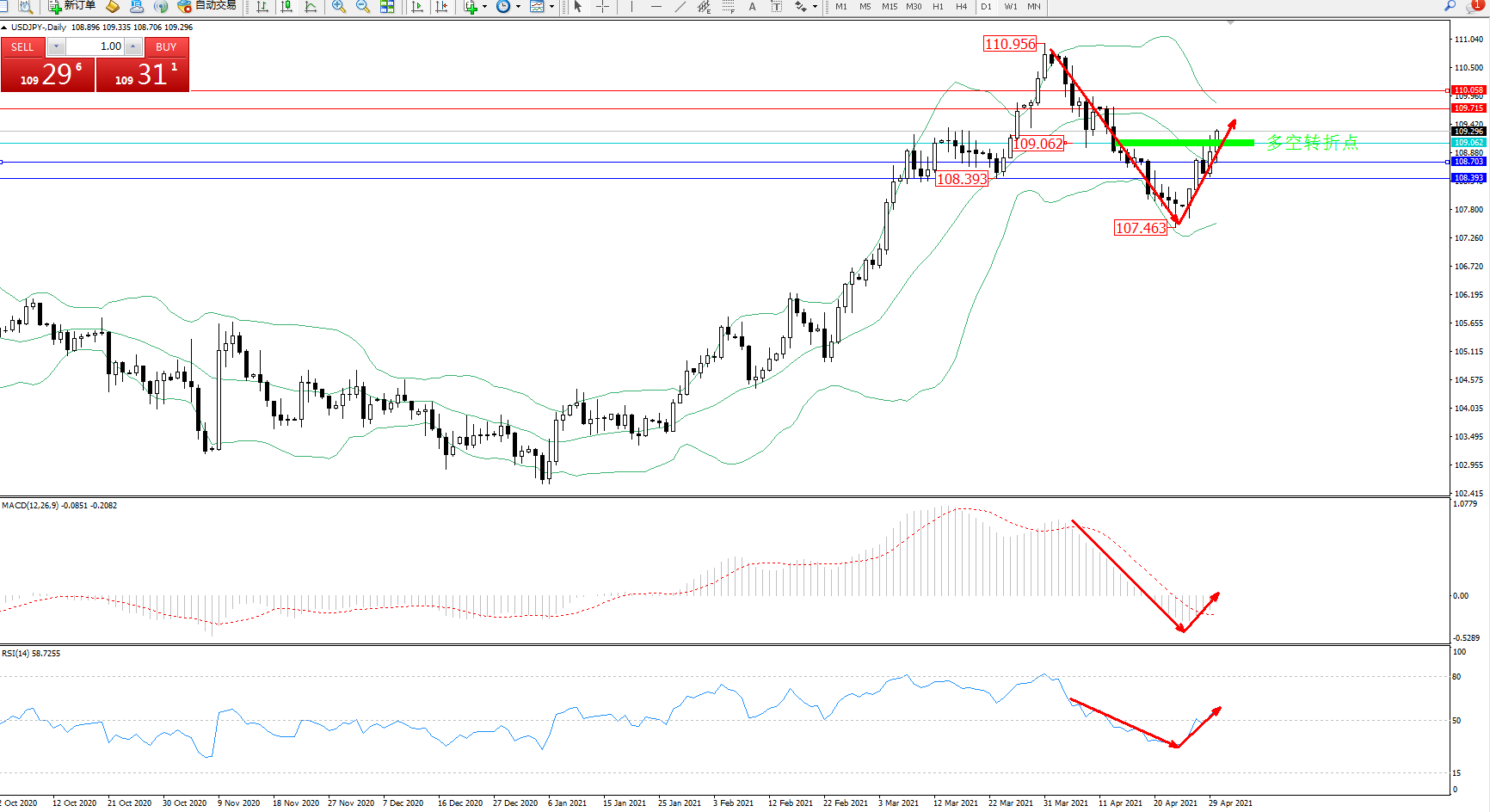 多空转折点:109.062