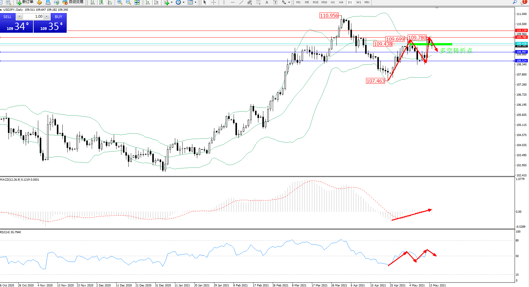 多空转折点:109.438