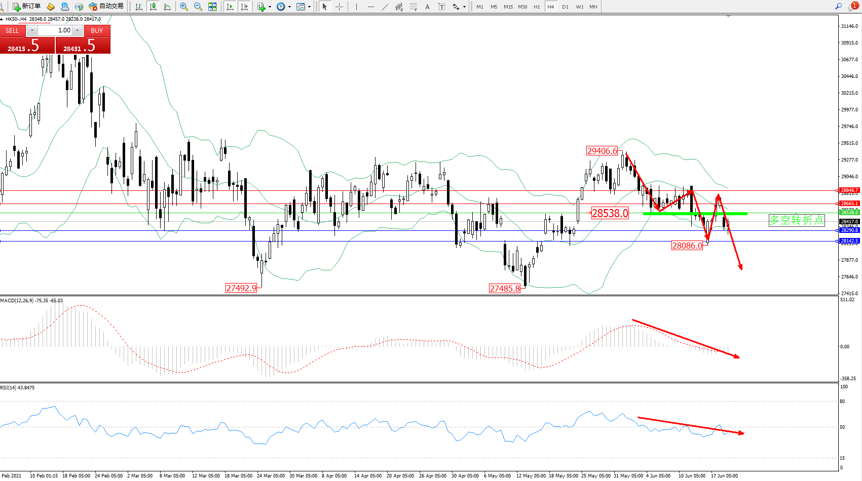 香港恒生指数6月21日(周一)收盘下跌312.27点,跌幅1.08%,报28489点;港股三大指数全线收跌,市场整体情绪表现低迷。恒生科技指数跌1.06%报7955点。大型科技股多数下挫,小米、网易跌近3%,京东、腾讯跌2%;另一方面,因中国电信调整派息,股价大涨带动整个电信板块走俏,今日大市成交额放量至1573亿港元,南下资金逆势净流入18.55亿港元。南下资金今日净卖出4.81亿港元。腾讯控股、小米集团、思摩尔国际分别遭净卖出40.58亿港元、3.37亿港元、2.26亿港元;吉利汽车逆势获净买入16.79亿港元。香港特区行政长官林郑月娥表示,香港已14天本地个案清零,已正式与澳门特区政府商量,恢复港澳通行。至于与内地通关方面,林郑月娥说,如非上月广州出现个案,香港已推出“来港易”计划,目前当局会密切监察情况,当稳定后会推“来港易”,同时会与中央商讨较大型的人员往来政策,特区政府也会提交建议,如何让香港及内地人员恢复放宽检疫要求的通行。