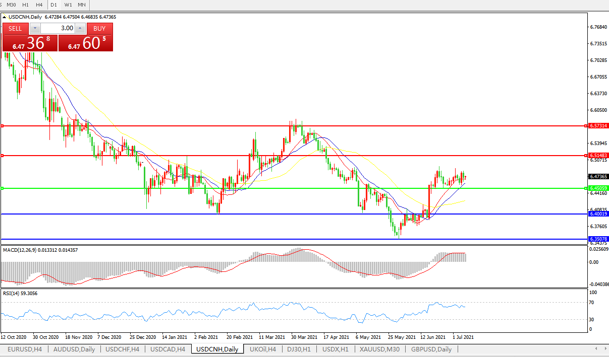 交易策略: 在6.4505之上,看涨,目标价位为6.5150,然后为6.5730。备选策略: 在6.4505之下,看跌,目标价位为6.4000,然后为6.3505。