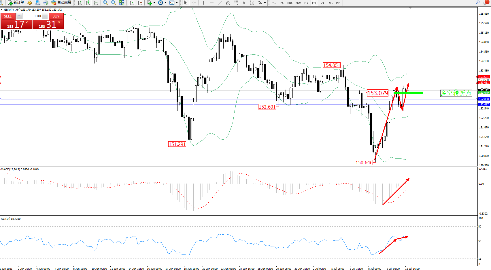技术点评:低位多头力度强势回升至布林带指标通道中上轨区间持续震荡上移,短暂回撤后再度呈拉升走势,布林带指标呈收口平移后有张口迹象,多头动力有进一步有向上移动态势,MACD指标低位多头动力持续震荡上移至0轴线上方徘徊中,RSI指标纠结于50均衡线附近整理中;