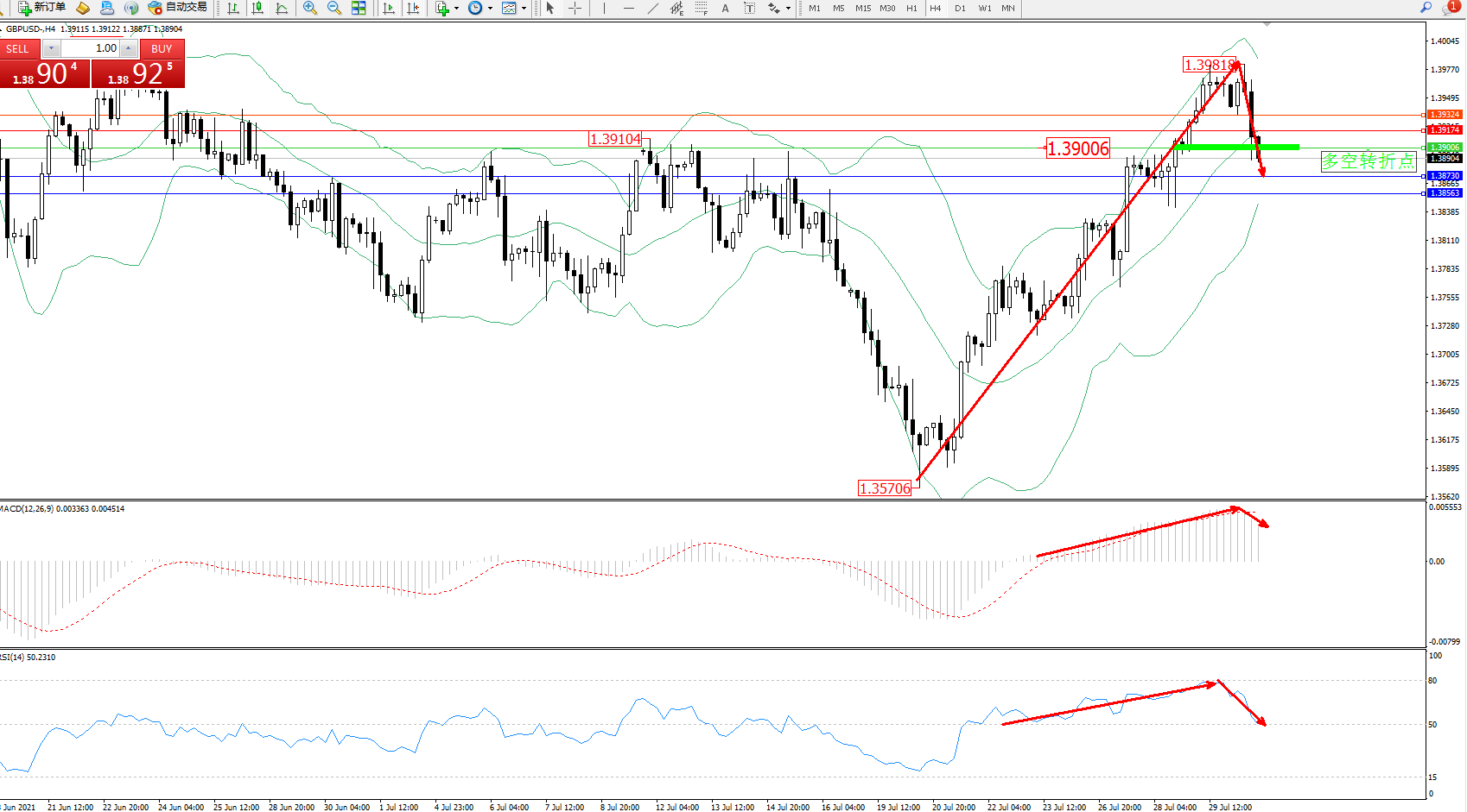 备选策略:1.39006上方看涨,目标1.39174、1.39324