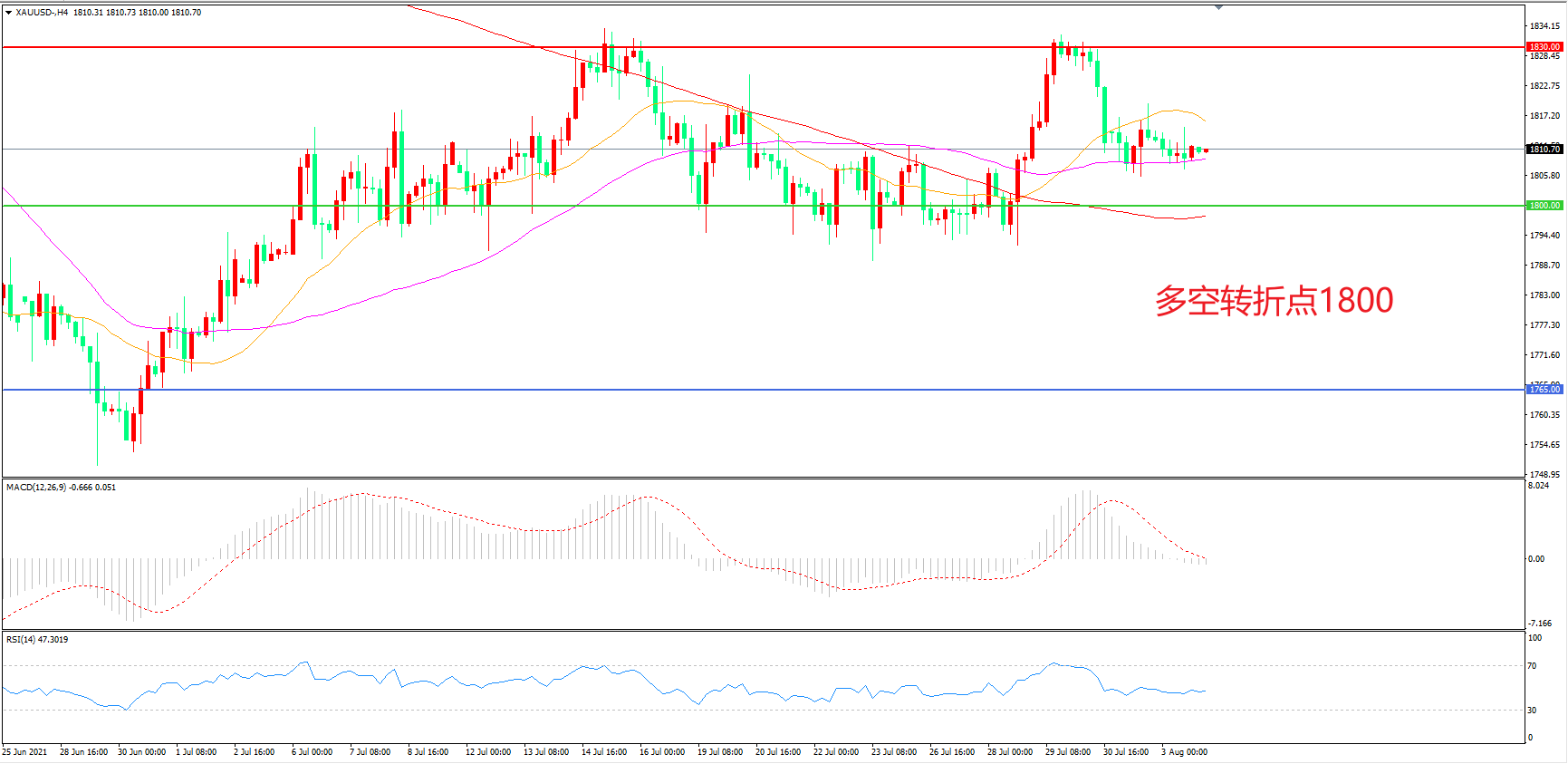 交易策略:  在1800.00之上看涨,目标1830.00       1860.00