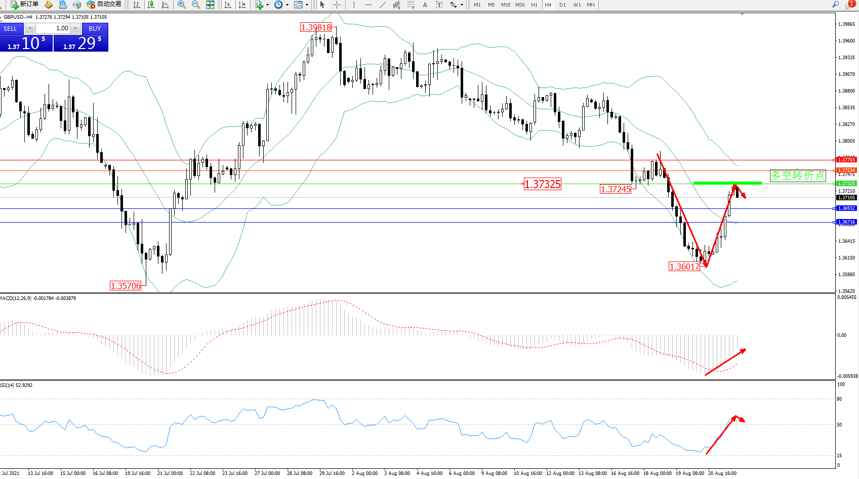 备选策略:1.37325上方看涨,目标1.37534、1.37703