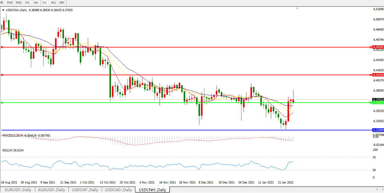 交易策略:6.3650之上,看涨,目标价位为6.4100,然后为6.4550
