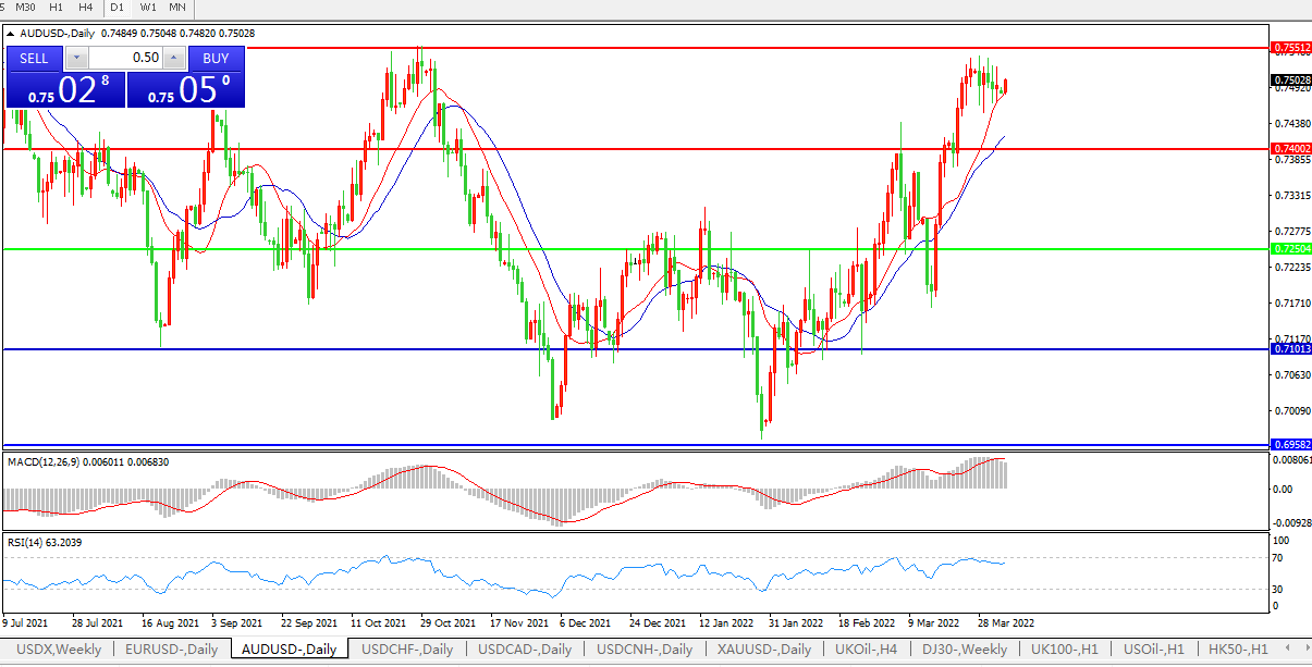 压制位:0.7400 0.7550